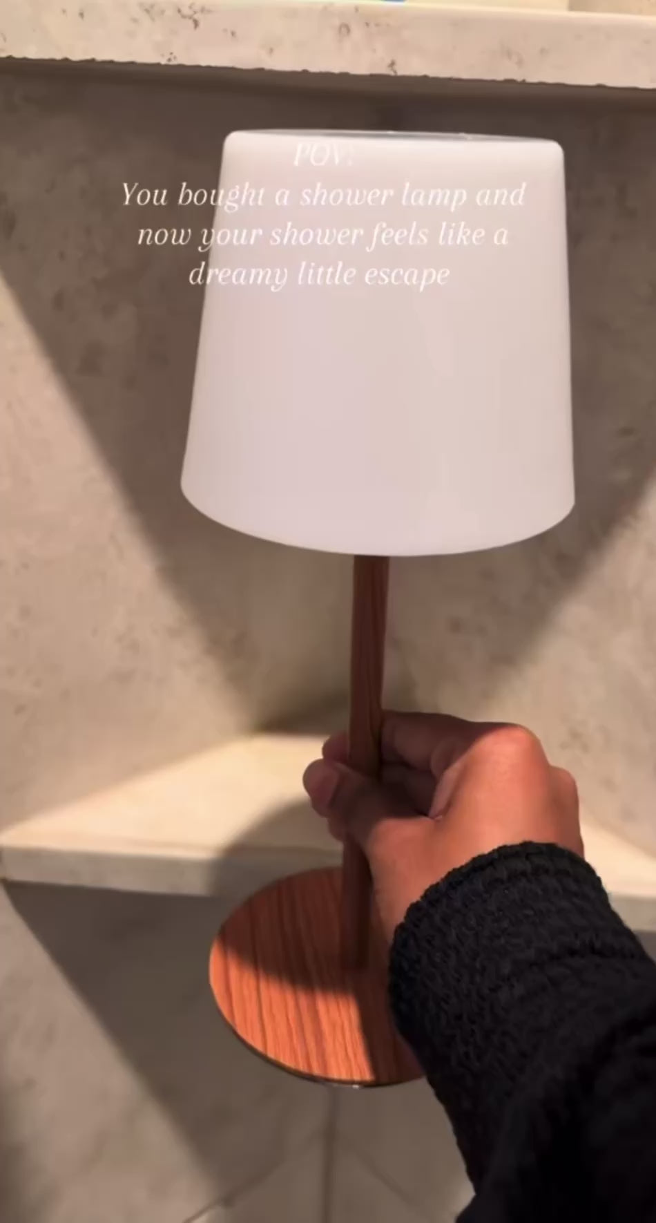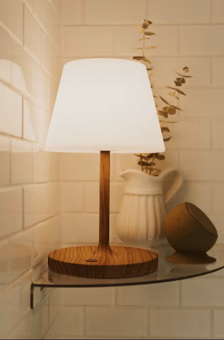 Minimalist design with a natural wood base and soft warm light. Perfect for bathrooms, bedrooms, or any cozy space. Elegant, compact, and moisture-resistant.